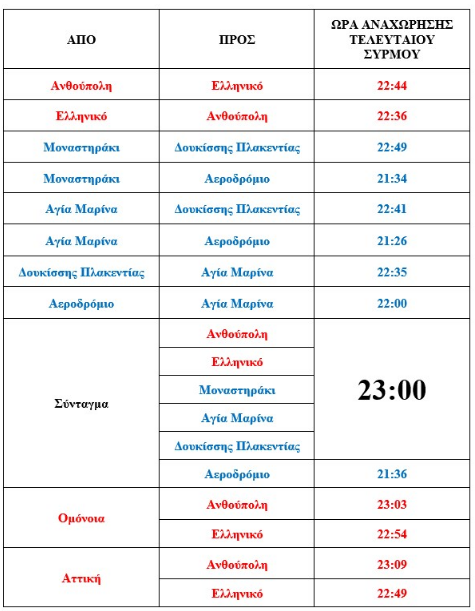 Το βράδυ του Μεγάλου Σαββάτου 18 Απριλίου τα τελευταία δρομολόγια θα πραγματοποιηθούν ως εξής: