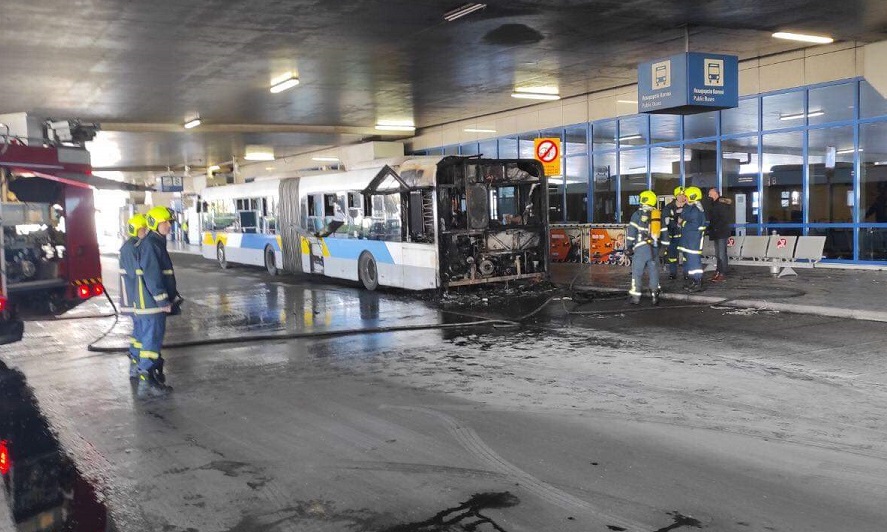 Από την πυρκαγιά κατστράφηκε ολοσχερώς τουλάχιστον το οπίσθιο τμήμα του αρθρωτού λεωφορείου ενώ ευτυχώς δεν υπήρξαν τραυματισμοί.
