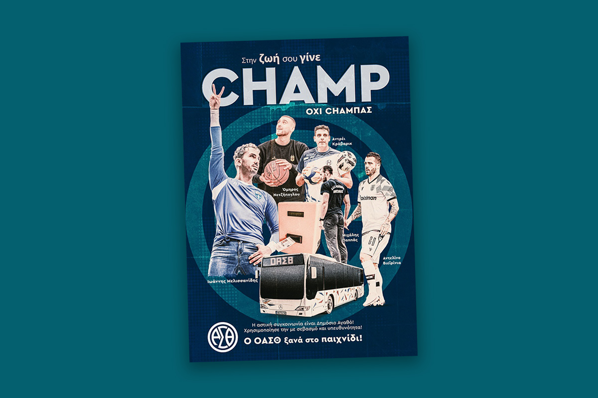 Πέντε κορυφαίοι αθλητές υποστηρίζουν την καμπάνια των συγκοινωνιών της Θεσσαλονίκης κατά της εισιτηριοδιαφυγής, συμμετέχοντας στην καμπάνια του ΟΑΣΘ με σύνθημα «Στη ζωή σου γίνε champ, όχι champας».